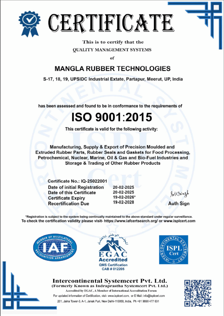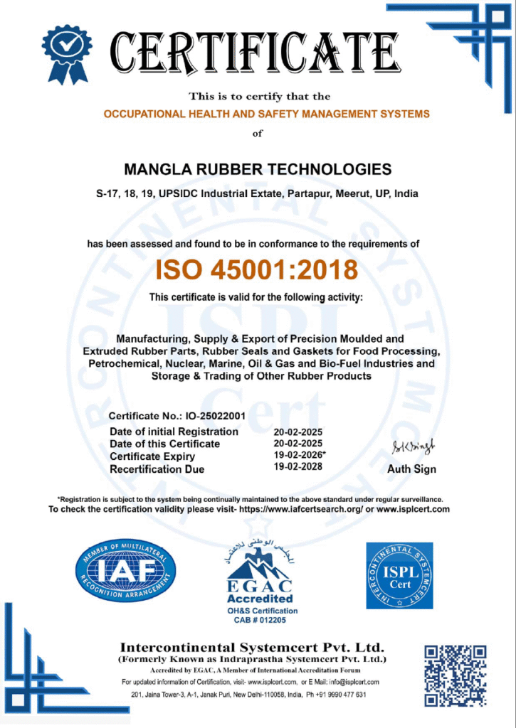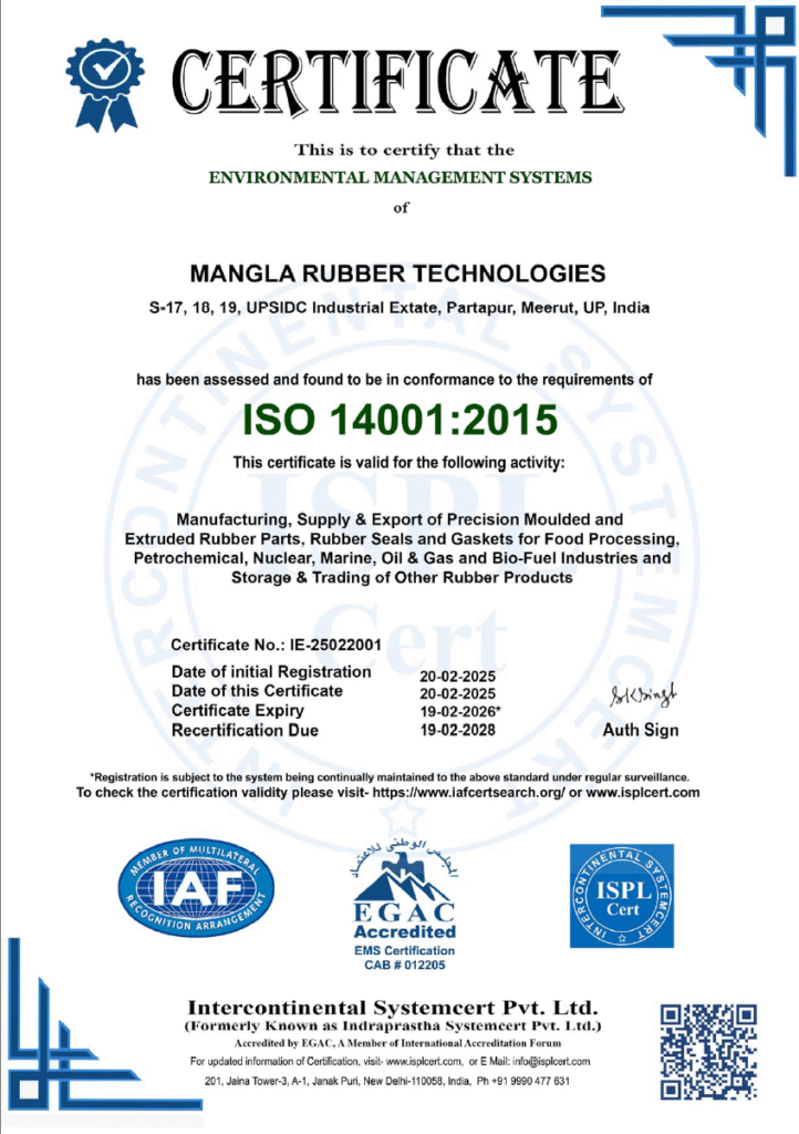 Our Certifications Below are some of our key certificates. Please be in touch for more information. ISO9001:2015 Quality Management Systems Certificate ISO14001:2015 Environmental Management Systems Certificate ISO45001:2015 Occupational Health and Safety Management Systems Certificate WRAS certificate for EPDM Rubber in contact with Drinking water